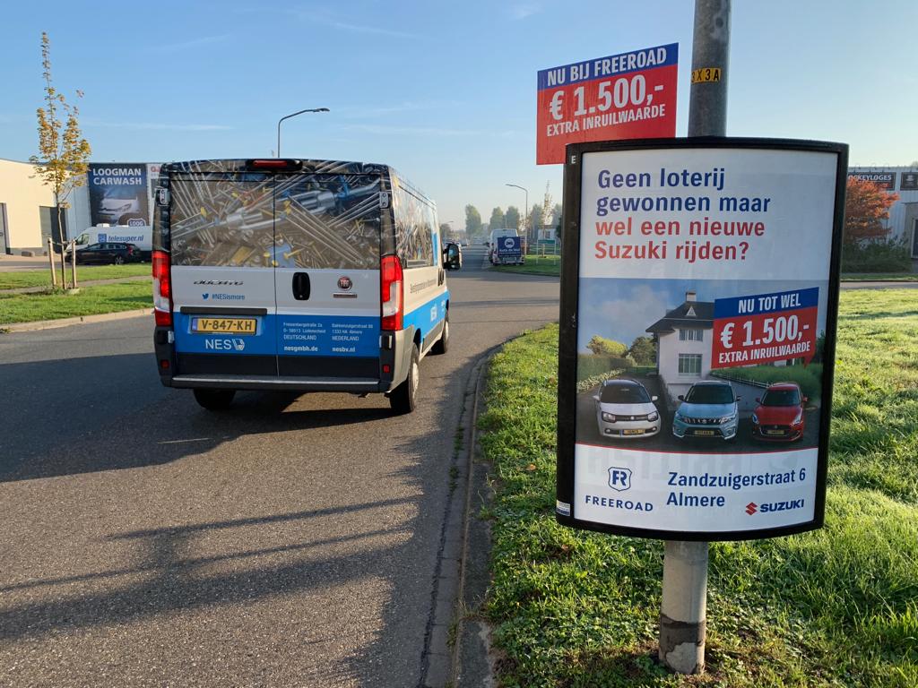 Niet alleen Abri’s kunnen omgebouwd worden tot een special, ook met een driehoeksbord (two-sign, A0 bord) is meer mogelijk dan alleen een poster. Zo kan je er speciale stickers op plaatsten, extra borden opzetten of misschien heb je wel een ander leuk idee. Vraag het gerust en wij gaan aan de slag!